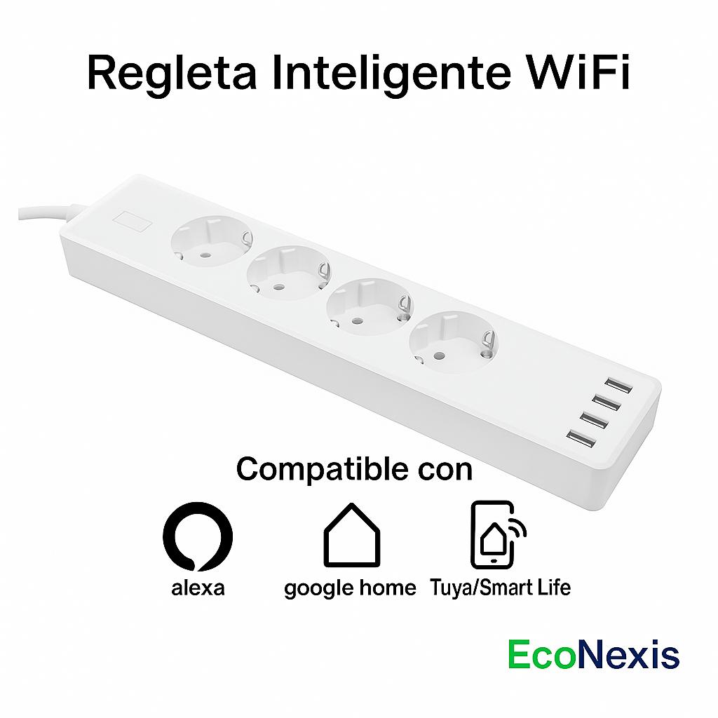 Regleta Inteligente WiFi con 4 Tomas y 4 Puertos USB | Compatible con Alexa, Google Home y App Tuya